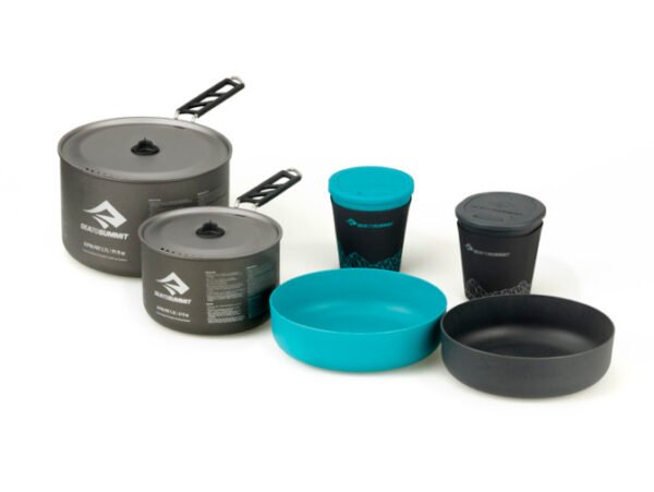 Περιλαμβάνει:1 κατσαρόλα Alpha Pot 1.2 L βάρους 187 g και 1 κατσαρόλα Alpha Pot 2.7 L βάρους 282 g. 2 μπολ DeltaLight Bowls και 2 κούπες DeltaLight Insul Mugs απο πολυπροπυλένιο ενισχυμένο με ίνες γυαλιού των 350ml.