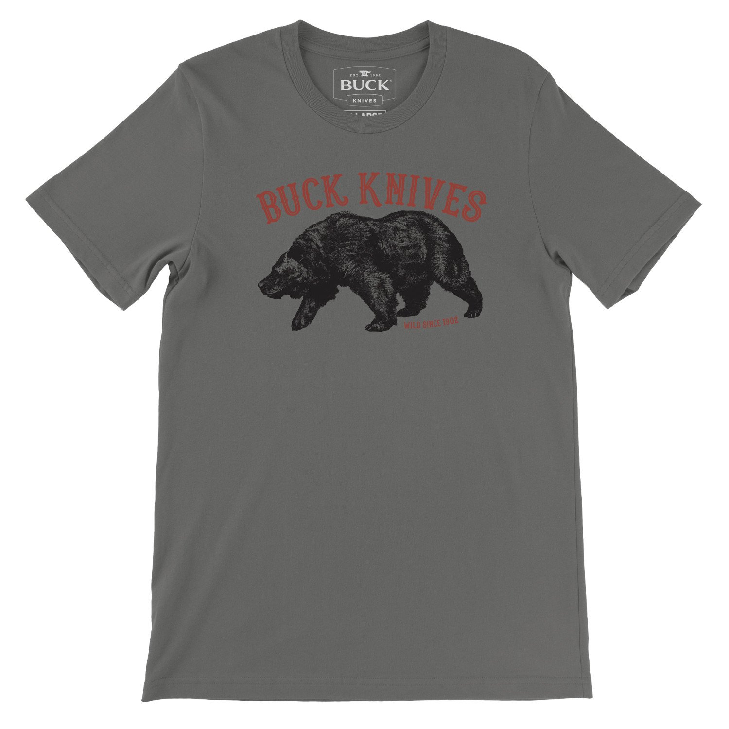 Μπλουζάκι Buck με γραφικό Buck Knives και αρκούδα grizzly. Κατασκευασμένο από 100% βαμβάκι.