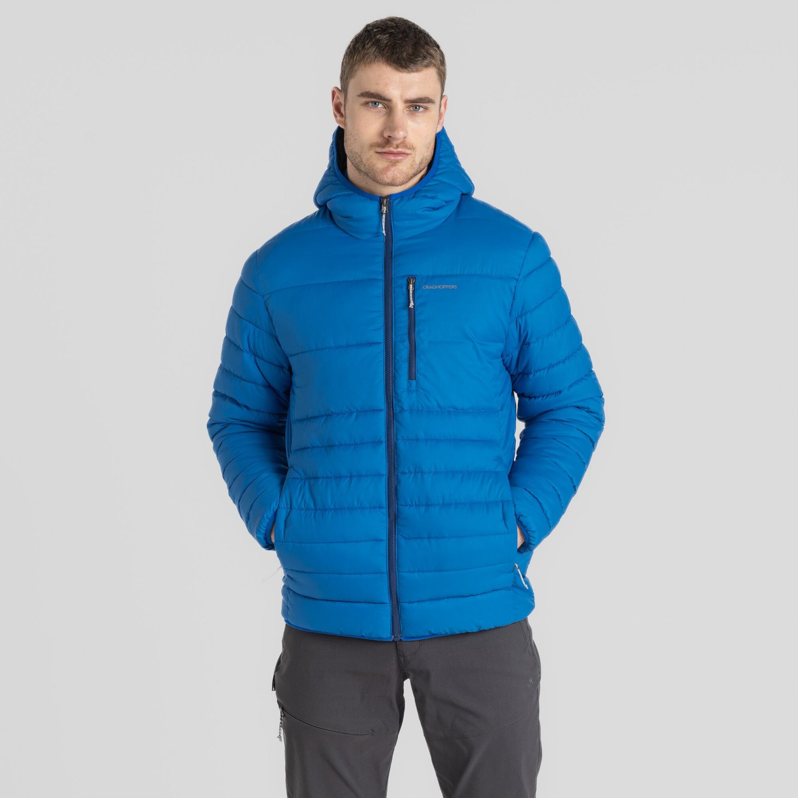 Εξαιρετικά ελαφρύ και ζεστό μπουφάν από την Craghoppers. Διαθέτει υδρόφοβο φινίρισμα EcoShield και ενσωματωμένες τσέπες με φερμουάρ και κουκούλα με ελαστικό δέσιμο.