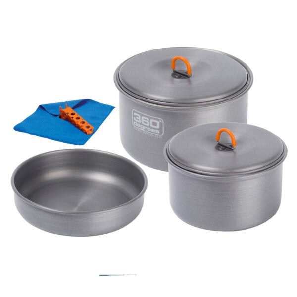 Το μεγάλο σετ μαγειρέματος 360 Degrees Furno απευθύνεται σε όσους αγαπούν το φαγητό χωρίς να κουβαλάνε βάρος, και περιλαμβάνει όλα όσα χρειάζεται ένας “σεφ” για να μαγειρέψει ένα υπέροχο γεύμα για 1-3 άτομα.Κατασκευασμένο από σκληρά ανοδιωμένο αλουμίνιο, αυτό το σετ μαγειρικής καθαρίζεται εύκολα και θα διαρκέσει για πολλές εποχές. Αποτελείται από μια κατσαρόλα 2,8 λίτρων με καπάκι (235g), μια κατσαρόλα 1,7 λίτρων με καπάκι (168g), ένα τηγάνι 1 λίτρου (126g), μια λαβίδα κατσαρόλας (44g), ένα πανί πιάτων από μικροΐνες (12g) και μια θήκη αποθήκευσης (30g). Ακριβώς, όλα όσα θα χρειαστείτε για να βράσετε, να σοτάρετε και να τηγανίσετε ένα γκουρμέ γεύμα στο δάσος.Ο σχεδιασμός σε μορφή φωλιάς επιτρέπει να είναι ιδανικό για όσους έχουν περιορισμένο βάρος και χώρο στο τροχόσπιτο και για το ίδιο το δίδυμο ή την ομάδα πεζοπορίας. Για την πεζοπορία όπου είστε μόνος σας, πάρτε απλώς το δοχείο 1,7 λίτρων μαζί σας, υπεραρκετό για το μαγείρεμα και τα φλιτζάνια για το τσάι σας.Το σετ περιλαμβάνει 6 τεμάχια: κατσαρόλα 2,8L και 1,7L με καπάκια, τηγάνι 1L, λαβίδα κατσαρόλας, πανί και θήκη αποθήκευσης Κατασκευασμένο από σκληρά ανοδιωμένο αλουμίνιο Ζυγίζει 615g Σχεδιασμός φωλιάσματος για εύκολη μεταφορά Έρχεται με θήκη αποθήκευσης