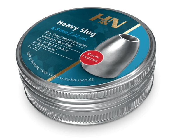 Η H&N διευρύνει την γκάμα βάρους με τα νέα βλήματα Heavy Slug στο διαμέτρημα .22 που έχουν σχεδιαστεί για κυνήγι και σκοποβολή σε μεγάλες αποστάσεις με αεροβόλα όπλα υψηλής ισχύος. Τα νέα βλήματα εγγυώνται τεράστια διαστολή εξαιτίας των κοίλων σημείων τους συνδυαστικά με τον μαλακό μολυβδο. Εξαιρετικά ακριβή σε μακρινές αποστάσεις. Το Heavy Slug αναπτύχθηκε και δοκιμάστηκε σε στενή συνεργασία με τον Air Hunter Gerhard, τον διάσημο ειδικό στο κυνήγι με αεροβόλο όπλο και στην αγωνιστική σκοποβολή.