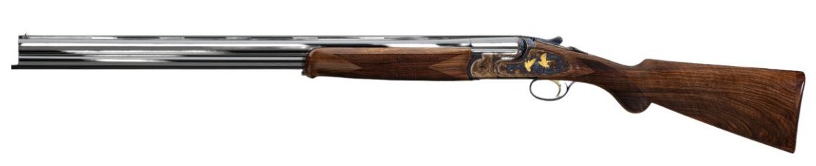 Δίκανο όπλο με βάση με διακοσμητικές ολόκληρες πλάκες (Side Plate) και κυνηγετικές παραστάσεις.